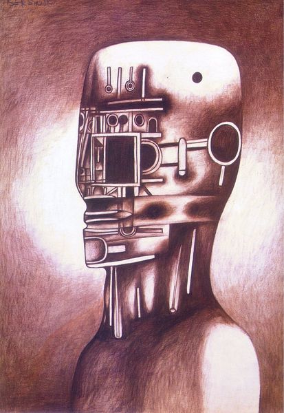 This untitled work was created by Zdzislaw Beksinski, capturing a haunting visage of the human form. Here, the face is not merely a portrait but a landscape of decay and reconstruction. Note how half the face is intricately mechanized, while the other appears as cracked stone, merging organic and inorganic elements. The letter ‘N’, prominently displayed, evokes the classical world, yet its context here is unsettling. Letters, historically symbols of knowledge and order, become emblems of alienation. This juxtaposition reminds me of the memento mori tradition, where skulls and decaying objects serve as reminders of mortality. Consider how Beksinski taps into our collective unconscious, echoing ancient fears of mortality and transformation, reflecting a deep-seated anxiety about the disintegration of the self, a powerful force engaging viewers on a subconscious level. This is not a linear progression, but a cyclical return, as such symbols resurface, evolve, and take on new meanings in different historical contexts.