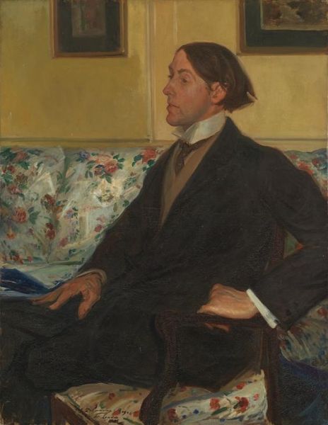 Editor: Here we have Gustave Caillebotte's "Portrait of a Man," painted around 1880, using oil on canvas. The sitter appears contemplative, gazing out of what I presume is a window. It has such a feeling of quiet intimacy; what are your thoughts when you look at it? Curator: This painting, like much of Caillebotte’s work, provides a fascinating lens through which to view the evolving role of the bourgeoisie in late 19th-century Paris. Notice how he is positioned—indoors, observing, but somewhat removed from the exterior world. Who do you think this man could be? Editor: He seems like he’s part of the upper class. The tailored suit, the ornate window…everything suggests a certain level of comfort and privilege. Curator: Precisely! Caillebotte, himself a man of considerable wealth, often depicted scenes from his own social sphere. His work, therefore, served as a sort of visual record. It subtly investigates the evolving codes of conduct within that world. Does the fact that Caillebotte was a wealthy man influence your viewing of the artwork? Editor: Definitely! Knowing he belonged to that class makes me think about how he chose to represent it. Is he celebrating it, critiquing it, or just documenting it? The subject's quiet gaze almost suggests a sense of ennui. Curator: It's a complicated mix, I think. Consider the Impressionists' fascination with depicting modern life, including leisure activities. Yet, Caillebotte also inserts this quiet psychological depth, making it less a simple snapshot and more a commentary. The institutional power of portraiture historically was often about idealization. Caillebotte seems interested in something else. Editor: I see what you mean. So it’s less about simply capturing a likeness and more about saying something about the subject's place in society and perhaps even the artist’s own. I'll have to look at Caillebotte differently now! Curator: Absolutely, and that's part of what makes his work so compelling. It reflects a specific time and social stratum but prompts us to question those constructs, too.