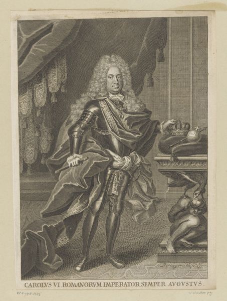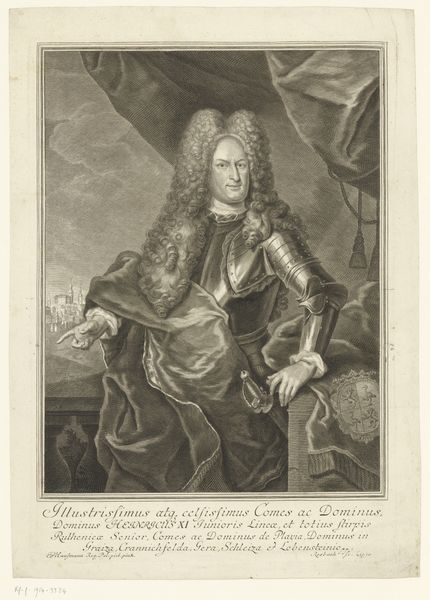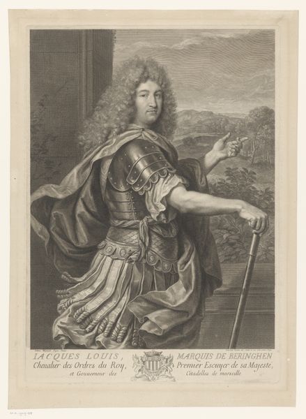 This print of Jean François Paul de Bonne de Créqui was made by Pierre Drevet, probably in the early 18th century. It's an engraving, meaning that the image was incised into a metal plate, likely copper, using a tool called a burin. The magic of engraving lies in its capacity to create minute, controlled lines, capturing an extraordinary amount of detail. Just look at the rendering of that wig! Each curl meticulously described, or the intricate patterns of his garments. The print’s success depends on the engraver's mastery. It required years of dedicated practice, and close collaboration with the painter whose work is being reproduced. Prints like this played a crucial role in disseminating images and ideas, allowing for wider access to art and information. They also represent a fascinating intersection of craft and commerce, skilled labor, and artistic expression.