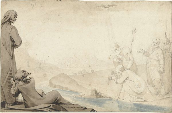 Editor: Here we have "Charon Ferrying Mars and Minerva," a 17th-century drawing by an anonymous artist, rendered in ink, chalk, and graphite on paper. It's an image that feels steeped in history and mythology, and the sepia tones give it a sense of age and solemnity. What draws your eye to this particular piece? Curator: Well, as a historian, I find this image fascinating for how it visualizes power dynamics. We see Mars, the god of war, and Minerva, the goddess of wisdom and strategy, being ferried by Charon, who traditionally carries souls to the underworld. The question becomes, what kind of cultural narrative is being woven here? Editor: A cultural narrative? Could you explain that a little more? Curator: Certainly. Consider the historical context of the 17th century. Allegorical representations like this were often commissioned by the powerful elite. In what ways were mythological figures being used to project particular social or political ideals, reflecting ideas about war and peace? Editor: So, you're saying the choice to depict these specific gods and Charon could have been making a commentary on the role of war and intellect in governance? Curator: Precisely! And it prompts us to consider how institutions like the Church or the State used and manipulated classical imagery to bolster their own authority. Editor: That's a very different angle than just seeing it as a pretty drawing. It makes me think about the artist’s role as a mouthpiece – or maybe a subtle critic? Curator: Exactly. That tension—the artist as both a participant in and commentator on the socio-political landscape—is central to understanding the artwork's cultural value and its long life as an image. Editor: This really changes my perspective. I always focused on the aesthetics, but understanding the historical function gives it so much more depth. Curator: That’s the power of history, isn’t it? It invites us to consider whose stories are being told, and how those stories shape our understanding of the world.