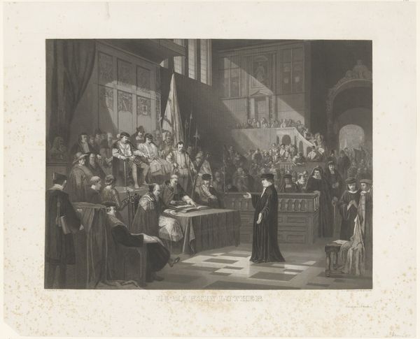 Jan Lucas van der Beek made this print, Heilig Avondmaal in de Nieuwe Lutherse Kerk te Amsterdam, using engraving, a process rooted in skilled labor. Here, the process of engraving, with its deliberate, linear cuts into the metal plate, mirrors the methodical rituals depicted. The stark contrast created by the technique emphasizes the light, drawing attention to the act of communion. The precision of the engraved lines captures the texture of clothing and architectural details, while the very act of engraving, requiring patience and manual dexterity, resonates with the values of dedication and craftsmanship. The engraving process itself mirrors the social context, the division of labor involved in its production. The artist's hand, the printer's press, and the consumer's purchase are all linked in a chain that reflects the broader systems of labor, class, and consumption in 18th-century Amsterdam. By considering the materials, the making, and the social context, we gain a richer appreciation of the image.