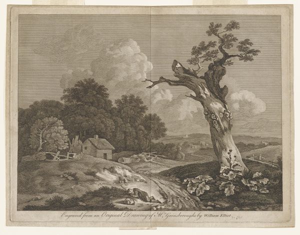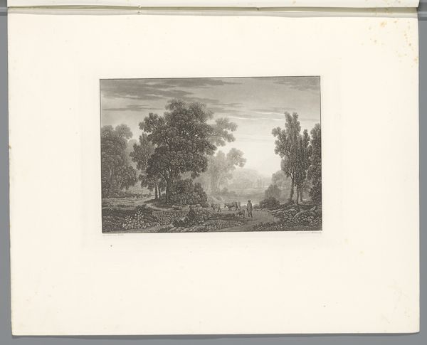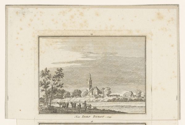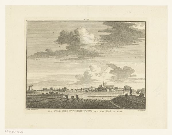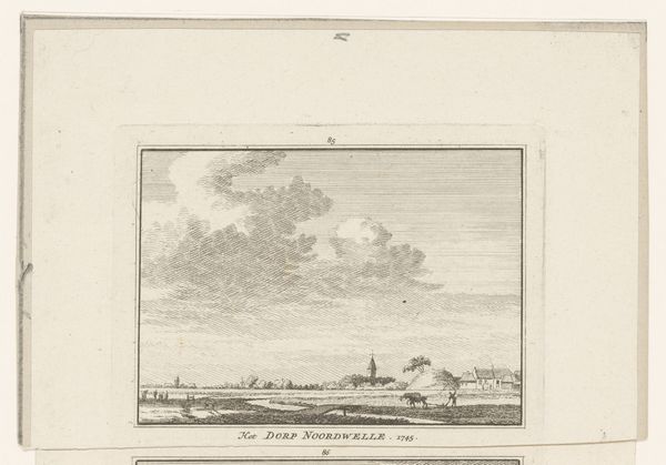 Hendrik Spilman created this print, ‘Gezicht op de heerlijkheid Mariekerke’, in 1745. The engraving is dominated by an expansive sky and an orderly landscape. Notice how Spilman structures the composition into distinct horizontal bands. The lower register, grounded by small figures and foliage, gives way to the middle ground where buildings and trees are captured with remarkable detail. Above, the sky is rendered with fine, precise lines to denote depth and atmosphere. Spilman employs a consistent linear technique, using subtle tonal variations to differentiate textures and surfaces. The overall effect is of a serene and neatly arranged world. The clear lines and structured layout suggest a desire to impose order on the landscape, characteristic of the Enlightenment’s interest in reason and classification. The work is a testament to the artist’s skill in controlling the medium to convey an impression of stability and control. Even within the small format, Spilman achieves a remarkable sense of scale and detail.