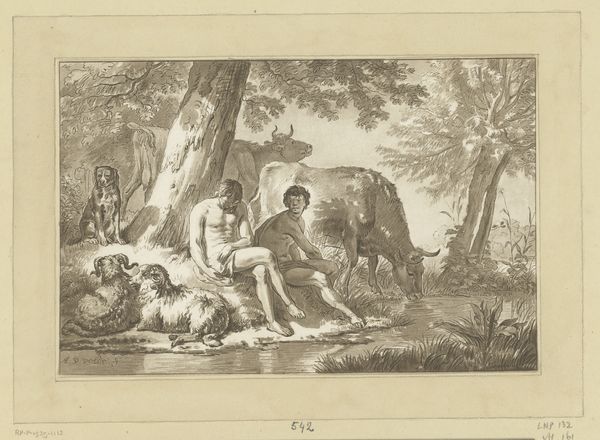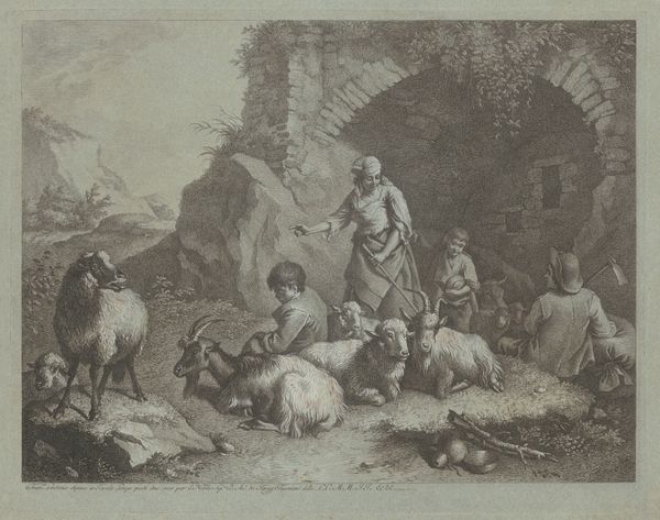 Francesco Londonio made this etching, "Seated Shepherd before a Flock of Goats," sometime in the 18th century. Look closely, and you can appreciate the demanding, repetitive labor that went into it. Londonio created this print by coating a metal plate with a waxy, acid-resistant substance, then drawing through it with a fine needle, exposing the metal. The plate was then submerged in acid, which bit into the lines, creating grooves. Finally, the plate was inked and pressed onto paper, transferring the image. It’s this indirect process that gives the print its particular character. The stark contrast of the line work against the blank paper, throwing the composition into sharp relief, demonstrates the skill of the artist, and the amount of work involved in the production process. Each mark represents a deliberate decision, a testament to the artist's vision and technical expertise. Londonio’s image invites us to consider the broader context of its making. By focusing on the materials, methods, and the labor, we can gain a deeper appreciation for the final artwork.