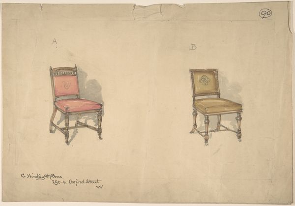 Curator: So, here we have an engraving, a print dating back to between 1753 and 1775, neatly titled "Twee stoelen", currently residing here at the Rijksmuseum. Anonymous, as the maker, depicts two chairs. What springs to mind for you, initially? Editor: Oh, the geometry! Such stark lines for representing something designed for comfort. The severe perspective contrasts so sharply with the florid, almost excessively ornamented chairs. Curator: Interesting. Ornamentation, in this period, really, it's communicating status, wealth. The Rococo style in the striped chair almost screams that, a sense of leisure. While its companion veers into Neoclassical tastes, evoking a somewhat "antique" feel as the caption notes, with more formal and sober motifs. Editor: Exactly, they're both such potent signifiers. Chairs are, in themselves, a subtle language of hierarchy and accessibility, but those details, it’s about sending deliberate messages: Who sits, where, and according to what aesthetic codes. I bet a lot of social maneuvering revolved around the presence and use of these specific chair types in rooms. Curator: Certainly. And this print could've served as a catalogue of sorts, a way for wealthy clients to select the most fashionable and appropriate seating for their homes. Do you notice how one is facing to the left and the other one to the right, it's the artist allowing you to perceive every part of both pieces. Editor: Ah! Visual merchandising of the 18th century. Each scroll and curve highlighted, and it’s presented in a starkly lit showcase... quite clever when you consider its intended practical uses. It almost empties it of that more human quality though. I find it more than a bit clinical and dry. Curator: Perhaps that adds to its appeal! It’s so concise, capturing the very essence of the forms. And remember, it’s a functional image that is a study about form with different and opposing design and styles. Each clean stroke a whisper of history frozen for our present gaze. Editor: Maybe that tension, between its practical function and stylistic expression is the secret to its quiet staying power then.