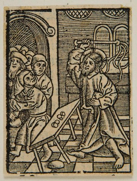 Editor: This woodcut illustration from Maffeus Vegius's *Philalethes* depicts a man in conversation with a winged figure. The stark lines and somewhat awkward proportions give it a very medieval feel. What can you tell me about the context of this image? Curator: This piece speaks volumes about the era's understanding of truth and knowledge. Notice how "Philalethes," the seeker of truth, is depicted alongside "Veritas." How do their contrasting appearances—one earthly, the other ethereal—reflect the societal power dynamics of the time? Editor: So, it's about more than just a simple quest for truth? Curator: Absolutely. Consider the male gaze inherent in the depiction of Veritas. How does this representation of truth as a semi-nude, winged female figure reinforce or challenge existing patriarchal structures? Editor: That's a perspective I hadn't considered. It really adds another layer to the image. Curator: Exactly. Art is never created in a vacuum. Examining these socio-political lenses can unlock new understandings of even the oldest works. Editor: I'll definitely look at art with a broader perspective now!