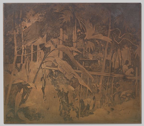 Curator: What an evocative piece! At first glance, the composition seems almost deliberately asymmetrical. Editor: I find it rather melancholy. Look at the way the pencil etches out the ramshackle hen house—its weathered planks tell stories of time and disuse. Curator: Indeed. What you’re observing is Willem Adrianus Grondhout’s "Old Chicken Coop near Voorburg," dating somewhere between 1888 and 1931. It’s rendered in pencil and colored pencil. What fascinates me is how this unassuming subject resonates with the symbolic theme of the ruin—the fallen state—a constant theme within Dutch Golden Age painting and drawing. Even something as seemingly insignificant as a chicken coop can take on an almost monumental, symbolic dimension. Editor: That staircase leading up to a Gothic-style window adds to that sentiment—a vestige of some past grandeur overlooking this dilapidated scene. It speaks to how the past and present are constantly layered upon one another. The overgrown vegetation and casual arrangement of objects, even a tipped-over bucket, signal that tension and decay are just under the surface. Curator: Absolutely. The pencil lines themselves—so delicate yet firm—carry a sense of transience. But despite this, the drawing feels strangely comforting. There’s something universally human in capturing the essence of everyday life as it merges with decay and renewal. We see this scene as if pulled from collective memory of the countryside. Editor: Agreed. This work’s visual sparseness becomes, paradoxically, an emotional depth. Grondhout demonstrates that potent images often arise not from dramatic subjects but the intimate rendering of what might seem trivial and easily missed. Curator: Yes, this humble drawing allows us to reflect on themes of decay, renewal, memory, and the passage of time. It transcends the specific, revealing much larger truths about human existence. Editor: It encourages me to examine overlooked spaces around us for a chance encounter that may have significant resonance.
