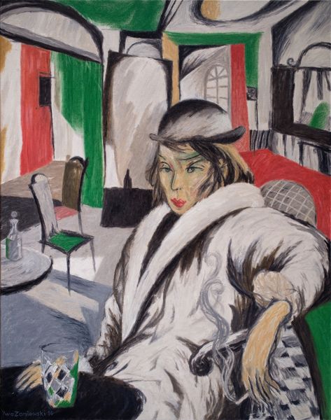 Curator: This is Paul Kleinschmidt's "Self-Portrait" currently residing at the Harvard Art Museums. The dimensions are roughly 90 by 70 centimeters. Editor: My first impression is one of intense focus and a certain world-weariness, maybe even a hint of defiance. Curator: I find the brushstrokes themselves so compelling. Notice the impasto technique, the way the paint builds up texture. It's not just representational; it’s tactile. Editor: Absolutely. The sunglasses hide his eyes, adding to the mystery. And that bundle of brushes, almost like a scepter. It seems to speak to the artist's identity and authority. Curator: How do the colors strike you? The muted palette, the contrast between light and shadow? Editor: It’s a melancholic harmony, really. The greens and yellows hint at life, while the gray undertones speak of introspection, perhaps even struggle. Kleinschmidt lived through both World Wars. Curator: It’s a powerful testament to the interplay of form and content. Editor: Indeed, a potent self-image rendered with undeniable emotion.