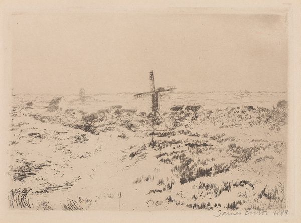 Curator: Here we have "Grafmonument", a photograph estimated to have been taken between 1900 and 1930, captured by Richard Tepe, found within the Rijksmuseum collection. Editor: Well, my initial sense is quiet solemnity. The monochrome palette coupled with the stark composition gives it a feeling of understated reverence. There's a somber beauty. Curator: Note how Tepe frames the monument. Its geometry juxtaposes against the organic growth of surrounding foliage. Observe too how this structured scene is photographed during what appears to be shadow overcast, contributing to the works' atmospheric quality. The verticality of the cross disrupts an otherwise horizontal landscape, an assertion against nature. Editor: Absolutely. That stark contrast heightens the cross's symbolic weight; it feels like a declaration against impermanence, rooted right there in that space. Yet there is still softness there. The gravel path curving organically toward the monument beckons, in contrast to the cross looming at its end. It is an invitation to ponder existence as a journey of our choosing. Curator: Indeed. Consider also the technical elements. The subtle gradations of tone in this albumen print are essential, aren't they? From a purely structuralist perspective, light and shadow function as signifiers of depth. Furthering the picture's formal elements with profound thematic resonance. Editor: Oh, absolutely. Without the delicate rendering of light here, the mood of the photo would change. I imagine it capturing light like dew. It whispers, rather than shouts of history or grandeur, even with all its hard geometric lines! I feel an intimacy with this forgotten place. Curator: That whisper, as you so eloquently put it, could very well speak volumes through time. Editor: Precisely. What this monument commemorates may be lost. The power of this captured instant, however, remains resonant, doesn't it?