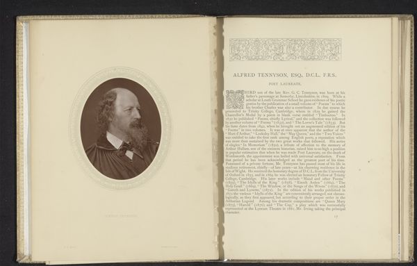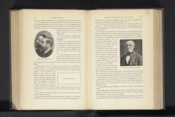 Curator: This is a photo reproduction of a portrait of Franz Nachtegall, dating back to before 1877. The piece itself is presented within the pages of what appears to be an old book, printed on aged paper. What strikes you most when you look at this image? Editor: It’s that melancholic air, I think. The faded sepia tone and the way it’s embedded in this antiquated book creates a sense of peering into a distant, almost forgotten past. It feels fragile. Curator: Nachtegall was a Danish gymnastics educator who significantly influenced physical education, establishing Denmark’s first gymnastics program for schools and the military. That stern face belies a man revolutionizing health and fitness! Editor: So, the book is likely a record, maybe a biography of his impact? It contextualizes his position within the educational and military structures of Denmark. I imagine he might have ruffled some feathers challenging established norms about physical discipline. Curator: Undoubtedly! And consider the medium: a photograph reproduced in print. This speaks volumes about the desire to disseminate his image and ideas. It’s not just a portrait; it’s propaganda, a visual statement solidifying his legacy. Editor: Absolutely, though I wonder about accessibility at the time. Was this a widespread publication, or something more exclusive, reserved for a particular class or institution invested in propagating Nachtegall’s approach to physical culture? The homemade paper hints at limited reach. Curator: Good point. It could be a limited edition or even part of a private journal, further imbuing it with intimacy despite the formal portrait. The printing is quite detailed given the apparent age. Editor: Thinking about it from a gender perspective, gymnastics has often been coded and politicized around ideal body types, fitness for military service, even shaping national identity. Nachtegall’s methods, were they inclusive, or did they reinforce specific patriarchal norms? Curator: That’s a critical question, and one this image alone cannot answer. We’d need to delve into his writings and the documented impact of his programs to assess their inclusivity. The portrait, in its formality, mainly signifies power, perhaps unintentionally excluding those not deemed "fit." Editor: It also makes me consider the physical labor involved in early photographic reproduction. It wasn’t the push-button ease we know today. It would be interesting to think about the many unseen hands involved in perpetuating this image. Curator: A fascinating consideration! I find myself pondering the untold stories behind the portrait: the sitter's posture, the photographer's choices, and the bookbinder’s craft. It elevates the portrait beyond a mere likeness into a complex layering of social and historical elements. Editor: Yes, and the power dynamics inherent in representation itself! It reminds me how even seemingly simple portraits can be powerful historical artifacts, reflecting much more than meets the eye.