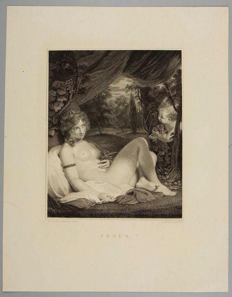 Curator: Théodore Chassériau's "Apollo and Daphne" offers a lithographic interpretation of the classic myth. The original artwork can be found here at Harvard Art Museums. Editor: I feel Daphne's desperation – the frantic energy as she transforms, trying to escape Apollo's grasp. You can almost hear the rustling of the leaves. Curator: Lithography, as a printing process, enabled the wider circulation of such narratives, thus democratizing access to classical themes. We should remember how such myths were consumed! Editor: The texture created by the lithographic crayon gives it a certain ethereal quality, almost like a dream. It is really beautiful, perhaps hinting at a deeper sense of transformation? Curator: Precisely. Examining such prints helps us understand 19th-century visual culture and the dissemination of classical stories to a broader public. Editor: It's a reminder that even in mythology, there's always a material reality shaping the story. I love seeing how the myth comes to life.