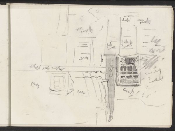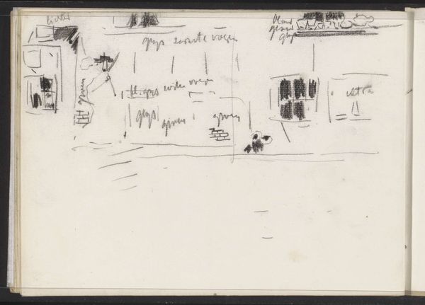 This sketch of the Voorstraatshaven in Dordrecht was created by Willem Witsen using graphite on paper. The composition is fragmented, capturing the essence of the urban landscape through a network of lines and shapes. It's a symphony of structure, a language of form, reduced to its most elemental parts. Witsen uses a matrix of lines to define the architectural forms—windows, buildings, and rooftops—fragmenting the coherent image into a web of semiotic potential. The work challenges fixed meanings and engages with new ways of thinking about representation. We see an exploration of space and perception that is both intimate and detached. It suggests an underlying structure of urban life, decoded and rendered in a highly individualistic style. The sketch, with its stark simplicity, reflects not only the physical appearance of Dordrecht but also a broader artistic concern with how we perceive and represent the world around us. It destabilizes established meanings and offers a new perspective through its raw and unfiltered lens.