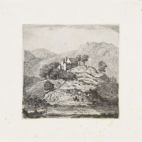 Curator: Immediately I feel drawn into a hushed world, something between a fever dream and a cherished memory. Editor: This ink drawing from 1877 by Louis Charles Hora Siccama, now held at the Rijksmuseum, depicts the high retaining wall of the Heidelberg Castle garden. Look at the dense textures. What stands out for you beyond the initial mood? Curator: Well, the contrast is pretty intense. It feels like a very theatrical staging, that wall bursting forth amidst what should be the more dominant landscape, like some silent guardian. I almost feel like the wall IS the drama. It whispers secrets of lives lived. Editor: It's all about contrasts, isn’t it? The delicate, almost frantic pen strokes detailing the trees, contrasted against the heavy, vertical lines giving weight to the stone. Consider also the social context. At the time, romanticism emphasized an appreciation of the past but, from a materials perspective, this scene almost obscures the castle itself. The actual site of power is marginalized by its architecture. Curator: Interesting, almost a sort of deconstruction, perhaps? Yes, power here hides among stone and greenery! I love how the lone tree almost mimics a cloud—or is that the other way around? Is Hora Siccama suggesting a blurred, osmotic boundary? I feel that ink drawings and pen sketches give us access to the thoughts and feeling of the artist. Editor: Speaking of materiality, look closely at how he builds depth through layered ink washes. See how each application seems to draw forward new planes? We must consider the laborious process involved to get this level of tonal variation with a limited palette. Also, consider Heidelberg as a tourist spot. This artwork might well be aiming for that commercial market, so while art, the practical concerns are evident too. Curator: Absolutely, like so much romanticism, nostalgia plays a huge part, wouldn't you agree? That the drawing material serves a practical, promotional function doesn’t necessarily diminish the emotive effect. So, a pen and ink become vehicles for both artistic expression and commercial transaction. Intriguing. Editor: Right. Seeing the physical materials involved and how that process occurred in its socio-economic reality helps you to think differently. And your visceral, deeply poetic connection to the drama enriches that!