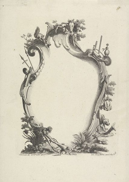 Johann Georg Hertel created this cartouche with agricultural objects, using etching, in the 18th century. The ornamental frame is filled with pastoral imagery and seems like a celebration of rural life. But, can we consider this representation of labor without acknowledging the historical context of the time? The 18th century saw the rise of Enlightenment ideals, but also the continuation of stark social inequalities. In this image, agricultural tools and produce are aestheticized, almost divorced from the reality of the labor involved in food production. The cartouche, meant to frame and highlight, could also be seen as obscuring the lives of the workers. Ultimately, this image offers a glimpse into the complex relationship between labor, representation, and social class during the 1700s, and invites us to reflect on whose stories are told and whose are left out.