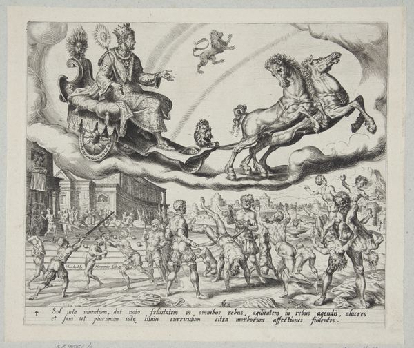 Pietro Testa created this print, "An Allegory in Honor of Innocent X," using etching techniques. We see an array of symbolic figures, including river gods representing prosperity, and allegorical figures denoting virtues, arranged in a complex composition praising the Pope. Notice the recurring motif of flowing water. It appears both as a life-giving force and as a cleansing agent. The river gods at the bottom recall ancient Roman depictions, linking Innocent X's reign to the glory of the past. This image of flowing water transcends its immediate context, echoing in diverse cultural symbols of purification and renewal from ancient Babylonian rituals to Christian baptism. Consider how such symbols have been passed down through history, shifting in meaning. Here, it serves as a powerful visual metaphor for the Pope's transformative influence. This interplay of classical and Christian motifs engages viewers on a subconscious level, tapping into collective memories and emotional associations. As we trace the symbol's journey, we witness its non-linear progression and its continued relevance in shaping cultural narratives.
