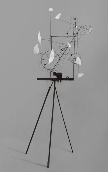This Untitled sculpture was made by Alexander Calder, and it's made of metal. Calder's approach to sculpture is so interesting, he reduces everything to these simple shapes and lines and then sets them in motion. It’s like he’s drawing in space, isn't it? I love the way the different elements balance each other, with the weight of the black circles contrasting with the lightness of the white disc, and the playful red circle floating above. You get a sense of the artist’s hand in the bending and shaping of the metal, it’s not perfect or polished, and that’s what makes it so appealing. The whole piece is so delicate and fragile, almost like it could blow away with a puff of wind. It reminds me of Joan Miro, another artist who was interested in simple forms and playful compositions, there’s something very joyful and life-affirming about both of their work, even though they never collaborated. Art is really an ongoing conversation across time.