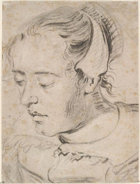 Curator: Here in Gallery 210, we have "Head of a Woman, Looking Right, Over Her Shoulder," a drawing executed in ink on paper by Stefano della Bella. It’s dated sometime between 1620 and 1647. Editor: It’s quite haunting, isn't it? The delicate lines create such a pensive mood. The slight tilt of her head and downcast eyes – there’s a quiet melancholy there. Curator: Della Bella was a master of line, and this drawing showcases his skill beautifully. Notice the economic use of hatching to define the forms, creating a sense of volume and shadow with such minimal means. But consider the social context: drawings like this served as studies, models for larger works, often disseminated as prints, impacting artistic practices across Europe. Editor: Yes, but beyond its utility, the line itself speaks volumes. The way it captures the texture of her hair, for instance. Or how the varying pressure conveys depth and contour, lending such elegance to the female form. I’m captivated by the economy and grace of his structural approach. Curator: Certainly. Della Bella, coming out of a Mannerist tradition, sought a balance between naturalism and idealized form. Prints made his art accessible, feeding a growing market and influencing workshop practices. We should also remember the importance of paper at this time, a precious commodity that dictated the scale and preservation of such works. Editor: I’m more concerned with the artwork’s visual architecture, and find your focus somewhat reductive. I find more significance in the curve of the neck, the shadow along her jaw. The artist's mastery transcends material conditions; it lives in the intentional deployment of line. It almost speaks to the nature of being seen, with her both acknowledging the gaze, while existing independent of it. Curator: True, there’s that compelling ambiguity. It is a fine thing to experience an aesthetic reaction – so the piece works on multiple levels: material, social and the purely visual. Editor: Indeed, a dialogue between the world and its depiction. Curator: And a captivating example of drawing's vital role within larger systems of artistic production and circulation.