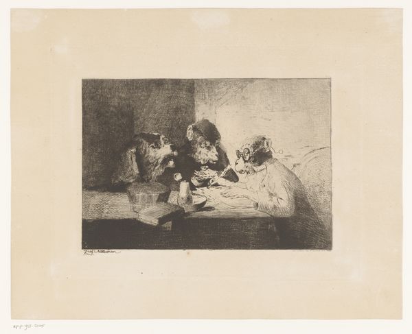 Karel Vitezslav Masek made this illustration for "Jestrab Kontra Hrdlicka, XXII" using an unknown medium. Masek was a Czech artist living at a time of rapid industrialization, urbanization, and political tension under the Austro-Hungarian Empire. This image might seem simply to depict a girl asleep on a bed, but in fact it reflects changing social attitudes toward women and the rise of literary culture. The image creates meaning through its intimate depiction of a woman in repose, a subject that gained prominence as literacy rates increased and artists sought to capture everyday life. The loose brushwork and soft lighting evoke a sense of privacy and quiet contemplation. To understand this work more fully, we can research Czech literature and social history of the late 19th and early 20th centuries, and we can begin to appreciate the complex interplay between art, culture, and society.