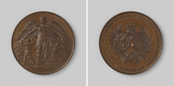 This silver medal was designed by A. Fisch for the International Colonial and Export Exhibition in Amsterdam in 1883. Silver, in its cool sheen and metallic density, lends an air of prestige to the medal. Minting a medal involves skilled die-cutting and stamping, processes that imbue the metal with symbolic weight. Note the way the images have been pressed into the metal: on one side, a portrait of King Willem III; on the other, allegorical figures representing trade and industry, celebrating Dutch colonial enterprise. The making of this object reveals a system of power and production: silver extracted from mines, labor expended in minting, and a colonial agenda made manifest in material form. It prompts us to consider the social and economic contexts embedded in this object. By recognizing the intricate connection between materials, making, and social context, we understand how the artistry of the medal is deeply entwined with the history of colonialism.