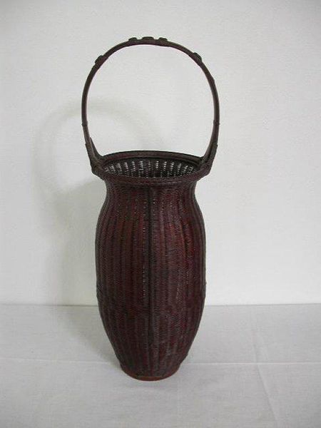 Editor: Here we have "Round Handled Flower Basket," made around the early 20th century by Tanabe Chikuunsai. It's crafted from bamboo, and there’s a kind of quiet sophistication to it. What's your interpretation of this piece? Curator: It's deceptively simple, isn’t it? On one level, it's a functional object. But I think we must explore how such objects—particularly within the framework of Japanese art history and its global reception, often mediated through the lens of "Orientalism"—reinforce or subvert certain expectations. The craftsmanship, of course, is exquisite. But consider what is not being said. Editor: What do you mean by “not being said?" Curator: Bamboo, as a material, carries symbolic weight. It represents resilience, flexibility, and strength in the face of adversity. How does this object negotiate the space between craft and fine art, tradition and modernity, utility and representation? How do you think this basket challenges or perpetuates idealized notions of Japanese culture, of gender roles, or of labour? Editor: That’s fascinating. I was just admiring the craftsmanship. I didn't consider those deeper layers. Curator: Exactly. Art is never simply about aesthetics; it’s embedded in the intricate webs of culture, politics, and identity. Does thinking about this change your initial feelings about it? Editor: Absolutely. I see now that it’s more than just a flower basket. It's a statement, even a subtle act of cultural negotiation. Thank you! Curator: It invites us to challenge the passive consumption of cultural products, urging critical examination and celebrating marginalized voices. The experience itself changes one’s perception of the aesthetic value.