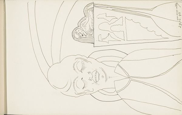 Samuel Jessurun de Mesquita made this drawing, Mannenkop boven drie kragen, van voren gezien, using ink on paper. It's all about the line, isn't it? So simple, but so expressive. The image is built up from straightforward, almost cartoonish lines, but look closer, and you will see these simple shapes create a face with real character. See how the sparse, almost childlike lines can construct a face. There's a directness, a real honesty in this work. That's the thing about drawing, about any art really, it’s like a conversation. Mesquita seems to be talking to other artists throughout history and forward to us. It's a reminder that art is a continuous process of exchange and experimentation. And that there is an openness to interpretation.