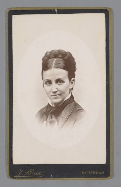 This portrait of an unknown woman was created by W.G. Kuijer & Zonen. It's a small piece, about the size of your hand, and it uses a muted palette to create a sense of timelessness. The surface is smooth, almost like glass. The details are finely rendered, especially around the woman's face and clothing. The dress is particularly fascinating, with its intricate lace and delicate ruffles, capturing the play of light and shadow. It's as if the artist wanted to freeze a moment in time, to capture the essence of this woman's being. There's an ambiguity in the way the piece has aged – the surface damage feels like a collaboration with time. It makes me think of artists like Gerhard Richter, who blur and obscure their paintings to create a sense of memory and loss. Like those works, this portrait also speaks to the transient nature of existence.