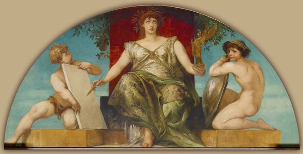 Curator: This is a detail from Raphael’s "The Triumph of Galatea," painted around 1506. You’ll find the fresco at the Villa Farnesina in Rome. Editor: The movement leaps right out! There’s such a feeling of joyous chaos in this slice of the mural. It’s very… fleshy. Curator: Indeed. It’s a prime example of the High Renaissance style, full of classical allusions. Galatea, a sea nymph, is shown in triumphant motion. Look at how the figures around her— sea creatures and other mythological beings—convey not just movement, but also the sheer abundance associated with the sea. Editor: What strikes me is the visible process. Look at the thinness of the paint, and the way it's layered on the plaster. You can almost see the hand of the artist at work, especially in the swirling drapery around Galatea. Curator: Raphael masterfully incorporates pagan iconography with humanist ideals. Galatea symbolizes ideal beauty and grace, and her triumph can be interpreted as the triumph of love and harmony over the chaotic forces of nature. Neptune was quite smitten, and of course, Ovid wrote extensively of Galatea. This visual interpretation is, if you will, shorthand for themes of rebirth and renewal that permeated Renaissance thought. Editor: Right, and those “chaotic forces” are literally being wrangled, aren't they? It’s fascinating how Raphael, through his very deliberate artistic labor and careful manipulation of pigment, brings order to those “wild” forms. It reminds me that the social context also informs how we consume idealized images. What materials are luxurious? What colors are valued? What physical form represents power? These were consciously determined artistic choices for Raphael to celebrate this particular mythology for his patrons. Curator: Exactly. Each detail adds a layer of meaning to the overall narrative. Even the poses evoke classical sculpture. It is truly about more than just the paint itself, but a kind of encoded cultural memory, expressed through idealized beauty. Editor: But I would argue the paint IS essential to the effect. Consider the color saturation, the almost casual virtuosity in representing flesh, cloth, and sea creatures... it’s seductive, physically and visually. That material impact, produced through the skilled labor of an individual and his workshop, had and continues to have, a tangible effect on the world. Curator: It is interesting how differently we can look at this work and find distinct value in it. Editor: Indeed. Every layer offers another kind of truth, right?