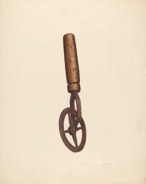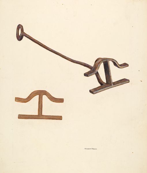 Wellington Blewett made this rendering of a Bootjack, with graphite and watercolor, sometime in the twentieth century. It’s a quiet, subdued rendering, and the way the object is lit makes it feel like a memory. The piece is more about capturing the form and texture of the object than a photorealistic rendering. See the way the artist plays with the light and shadow, using thin washes of watercolor to suggest the wood grain? The pencil marks add a roughness, a sense of the handmade that mirrors the bootjack itself. The color palette is simple, just a few earth tones, which gives it a timeless quality. It reminds me of some of the Shaker artists, who celebrated simple utilitarian objects. It's a reminder that art can be found in the everyday, and that the process of seeing and rendering can transform even the most humble object into something beautiful.