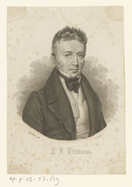 Emil Ditlev Bærentzen rendered this portrait of J. C. J. H. Gundelach Møller using lithography. The composition is structured around a central figure, tightly framed to emphasize the sitter's presence, while the monochromatic palette ensures that tonal variations and textures define the visual experience. Bærentzen masterfully uses light and shadow to model Møller's face and attire, lending a sculptural quality to the two-dimensional surface. The subtle gradations achieved through lithography capture a sense of volume and depth, typical of the period's focus on realism. The formal arrangement directs our gaze to the subject's eyes, suggesting an engagement with the viewer. Consider how the artist's choice of lithography allowed for a dissemination of images, which in turn democratized portraiture, making it accessible beyond the elite. The seemingly straightforward representation subtly engages with broader cultural values concerning identity, representation, and the burgeoning public sphere. Art perpetually invites revisitation, prompting endless interpretations within evolving contexts.