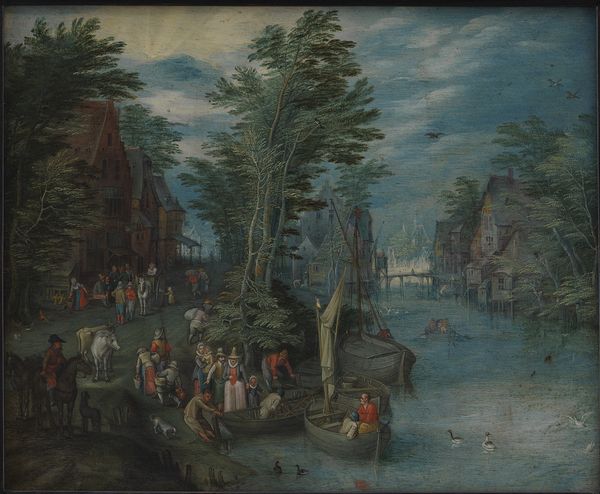 Philip Schey painted this lid of a harpsichord with oil on a wooden support. It depicts a large group of people in a verdant landscape, appearing to be enjoying a feast. The image invites us to consider the social conditions that might shape artistic production and reception. This scene is rife with visual codes and cultural references to the time it was made. The setting, clothing, and activities such as hunting and feasting suggest an aristocratic or wealthy class, possibly in 18th-century Europe, although further research would be needed to confirm this. The presence of a harpsichord itself as a luxury item points to a culture of affluence and leisure, where art and music were enjoyed by the elite. The lid might comment on social structures of its time, either reinforcing or critiquing them through its depiction of the ruling classes. Understanding the image requires interdisciplinary inquiry across history and visual culture.
