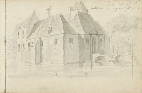 Editor: Here we have Abraham Meyling’s “Huis Ter Coulster te Heiloo,” created in 1724 using ink, watercolor, and drawing on paper. There's a certain quietness to it, almost a dreamlike quality to this castle surrounded by water. What’s your perspective on this work? Curator: I see a fascinating intersection of power, landscape, and representation in this seemingly simple drawing. Think about the social context of the Dutch Golden Age, which extended into the 18th century. These grand estates were not merely residences; they were symbols of wealth and status, built upon colonial exploitation. Editor: That's a really interesting perspective. I was mainly focusing on the art itself and not necessarily on any wealth-building context. Curator: Consider how the artist meticulously renders the architectural details. This isn't just about showcasing a building; it’s about documenting power and claiming ownership of the landscape through visual representation. The act of depicting the building can then be interpreted as symbolic support to class systems of the era. Who did this house belong to? What power dynamics are on display? Editor: I didn’t think about the relationship of documentation of power through art at the time. Curator: Exactly. Furthermore, reflect on the subtle use of water. It is not simply decorative; it creates both literal and symbolic barriers. The residents of such spaces were often shielded from the realities faced by the broader populace. What does that mean for contemporary engagement with landscapes such as these? Editor: So you’re saying it is important to explore power structures and socio-economic narratives behind a beautiful artwork. Curator: Precisely. Examining the historical and societal dimensions of art allows us to have a deeper understanding of social structures. Editor: I will look at these kinds of art through a more critical lens from now on. Thanks for your insights!