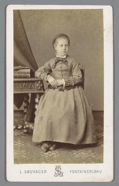 This photograph of an unknown woman standing next to a chair was made by Coenraad Cornelis Roskam, though the exact date remains unknown. The photographic process, developed in the 19th century, captured images using light-sensitive materials. The result is this sepia-toned print, a direct trace of light reflecting off the sitter and her surroundings. Consider the social context of such a portrait. It was an expensive luxury, but the rise of photography gradually democratized image-making. The woman’s clothing and the studio setting are carefully arranged. Her dress is particularly striking, evidencing extensive labor in its construction, speaking to both the wearer’s social standing and the industry required to produce such garments. Even the chair has a story to tell. By focusing on the material and social dimensions of this photograph, we appreciate the work not just as a depiction, but as a record of industry, labor, and social aspiration.