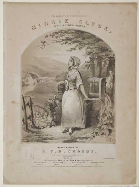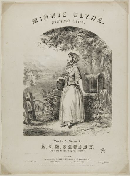 This is a lithograph print, made by Winslow Homer, showing the cover for a piece of sheet music. Lithography is a printmaking process that relies on the flat surface of a stone or metal plate, using oil and water to create an image. Here, the lithographic process allowed for the relatively quick and inexpensive production of sheet music covers. This speaks to the growing commercialization of music in the 19th century and the rise of a mass market for popular songs. Homer’s image, showing a young woman at a well, evokes a romanticized vision of rural life, likely appealing to urban consumers seeking an escape from industrializing cities. The work’s materiality lies in the contrast between the artistic skill required to create the original image and the industrial means of its reproduction and distribution. Paying attention to materials and making helps us see how art is deeply intertwined with social and economic forces. This cover embodies both artistic expression and the expanding reach of popular culture.