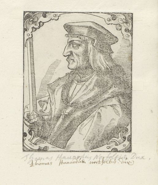 This engraving portrays Marcus Antonius Coccius Sabellicus, with unknown origins. It is an intricate work, where the artist used a network of fine lines to define form and texture. The portrait is presented in profile, enclosed within a decorative oval frame, which sits within a rectangular border, creating a structured composition. Look closely at the subject's face. See the lines that define his features – the curve of his nose, the set of his mouth, and the folds of his neck. The density and direction of these lines create areas of light and shadow, lending a sense of volume to the figure. Observe how the lines are more tightly packed in the darker areas, and more sparse in the highlights. Consider how the formal elements—line, shape, and composition—contribute to the overall impact of the portrait, providing not just a likeness, but also a sense of the subject's character and place in history. It prompts us to reflect on how visual representation constructs identity and encodes cultural values through its very form.