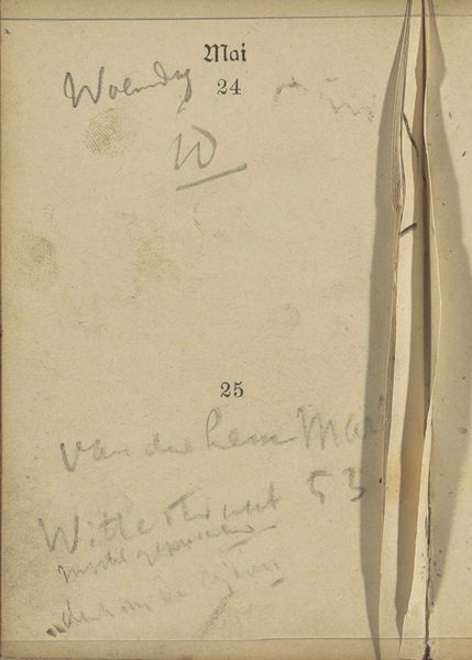 George Hendrik Breitner created this Annotation drawing, currently held at the Rijksmuseum, with pen and paper. At first glance, the artwork presents as an almost uniform, creamy surface, interrupted only by sparse handwritten notes in the upper-left quadrant. The texture of the paper, subtly aged, invites a close look at the materiality of the support itself. The composition, though minimalist, is structured by the tension between the vast emptiness and the deliberate markings. This contrast prompts consideration of absence as presence. The notes themselves, inscribed with a casual hand, function as signs that challenge the conventional notions of what constitutes a finished work of art. Breitner’s Annotation encourages us to question the boundaries between drawing and writing, intention and interpretation. It invites us to find meaning in the understated and to reconsider the value we place on the complete versus the incomplete.