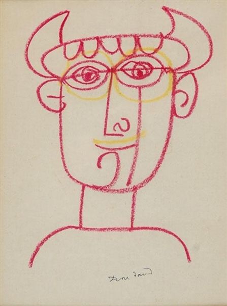 Jules Perahim made this portrait of M.H. Maxy using ink on paper. The immediacy and directness of the drawing underscores the essence of portraiture. Notice how the ink line confidently defines the subject, from the curve of his head to the somber expression in his eyes. Perahim's marks are not overworked or fussy. They have a raw quality that speaks to the artist's skill in capturing a likeness with minimal effort. The simplicity of the materials—paper and ink—belies the complexity of the artistic vision. The artist engages with the material in a way that reflects the values of the avant-garde. This portrait challenges the traditional boundaries between high art and craft. It is a testament to the power of drawing as a direct and honest form of expression, stripping away the artifice and pretense often associated with fine art.