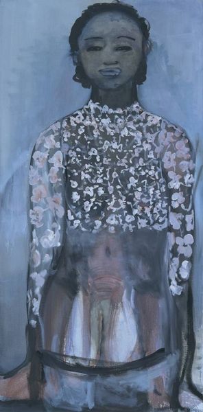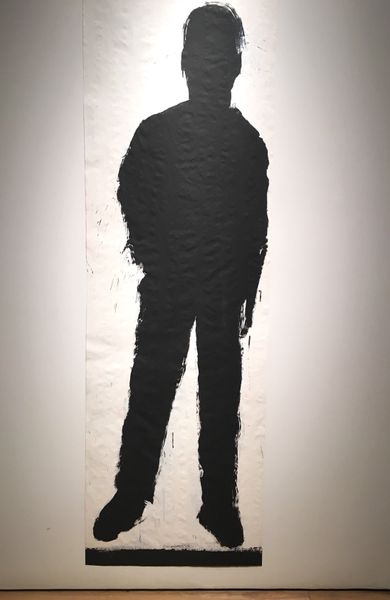 Njideka Akunyili Crosby made "Nkem", and what strikes me right away is how she builds up the image through layers, almost like she's constructing a memory piece by piece. Looking closely, you can see the material quality of this work; it's not just paint, but also collage and printmaking, maybe even solvent transfer. The figure's clothing isn't just fabric, it's a mosaic of images, a second skin made of history. It's like Crosby is asking, what does it mean to be seen, to be clothed in culture? Notice how the background is flat blocks of color, orange, turquoise, gray, and black. The collage extends onto the floor, grounding the figure and creating a sense of place. The white silhouette of the figure’s head gives the piece a ghostly, unfinished feel. It reminds me a bit of Kerry James Marshall, in that both artists use figuration to engage with questions of identity. This is about more than just what we see. It's about how we see, and who gets to be seen.