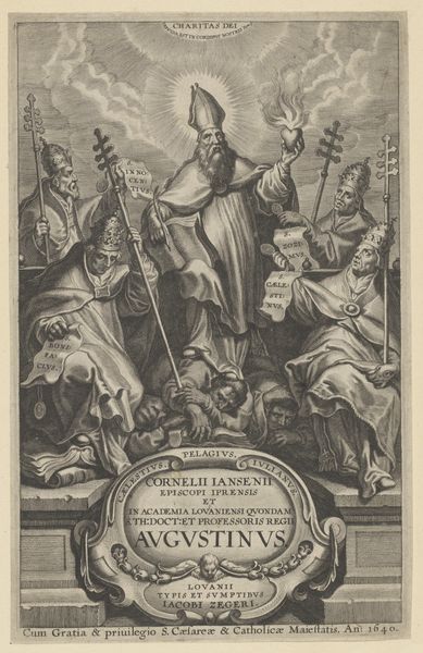 Editor: We’re looking at "The Life of Saint Gregory the Great," a 1604 engraving currently housed in the Rijksmuseum. The central image is striking, but it’s framed by these smaller narrative scenes that almost feel like a comic strip. How would you interpret the use of this format, and the piece in general? Curator: It's a fascinating example of how art served to both instruct and reinforce societal values. Prints like this were often commissioned by religious orders and distributed widely. What do you think this format conveys about the artist's intentions and the perceived role of art in 17th-century society? Editor: Well, given the context, the multiple scenes must’ve served an educational purpose. Maybe that was to promote particular stories about Saint Gregory. Is that a common function for art of this era? Curator: Exactly. Think of this print as a visual sermon. The Baroque era witnessed the Church's energetic promotion of its teachings, particularly after the rise of Protestantism. This work functions as propaganda in a way; using visual storytelling to cement the legacy of Saint Gregory, and subtly remind the viewers of the power and history of the Catholic Church. Do you think the image succeeds at that? Editor: Seeing it framed like this makes the image almost digestible, like an iconic snapshot of different events, making it accessible to the public and hard to ignore the intended religious message. I suppose this shows that visual pieces such as engravings, which seems common in the Baroque era, had some sort of political function. Curator: Precisely. Its historical context is what truly brings "The Life of Saint Gregory the Great" into focus. I will now have a greater awareness for its role in public and political discourse. Editor: Thanks for pointing out the significance behind it.
