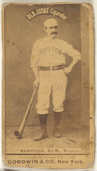 This is a photograph from the Old Judge series of baseball cards, circa 1887, presenting Conway, a pitcher for Boston. Here we see a man holding a wooden bat, itself an emblem of prowess and skill, but more profoundly, echoing clubs and staffs of ancient deities and heroes. Consider the baton or scepter, symbols of authority stretching back to antiquity. This baseball bat, held by Conway, is not merely sporting equipment. It is a modern-day analogue to the ancient symbols of power and agency, albeit transposed onto the field of play. Its meaning is less about power, and more about collective identity, and local pride. This simple image taps into deep-seated cultural narratives, demonstrating how symbols continually transform, carrying echoes of the past into new contexts. Conway, the baseball player, becomes an unassuming avatar of a cultural tradition.