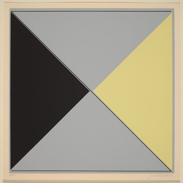 Here we have Jan Kubicek's "Square with Principle 'Z'," an intriguing piece where process is everything. It feels like a diagram, or maybe a stage set, but I think it’s all about how things are made. The colors are stark – a rich black, a vibrant teal, and creamy white – creating a high-contrast environment. The areas of color are solid, with little to no tonal variation. There's a precision here, and the lines are so clean you can almost feel the edge of the printing screen. My eyes are drawn to where the teal and black meet, bisecting the square. The lines here are super sharp, but not perfect. There is a slight waver which reveals the human hand. I am reminded of Sol Lewitt's wall drawings, which are similarly concerned with the nature of process and the relationship between idea and execution. Ultimately the piece invites us to think about the role of chance and intention in the act of creation.