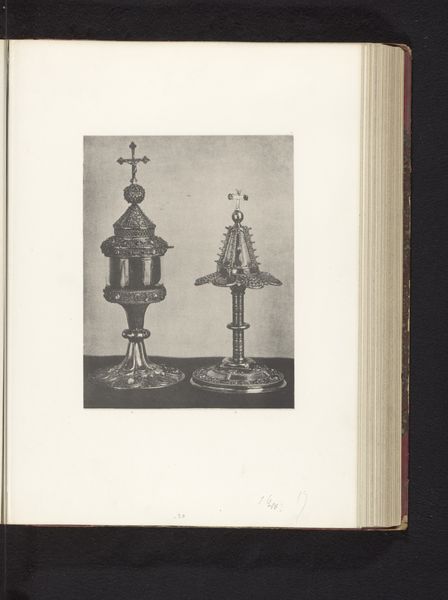 Joseph Maes made this photograph in 1864 in Mechelen, of a gilded silver vase and a monstrance, displayed at an exhibition of religious objects from the Middle Ages and Renaissance. These objects were made with processes such as metalworking, engraving, and gilding, all requiring a high degree of skill, labor, and time. The fact that the vase and monstrance are made of precious metals like silver and gold also reflects the opulence and power of the religious institutions that commissioned them. Consider the amount of work involved in creating the intricate details of the monstrance. These objects reflect a social hierarchy in which skilled artisans, like the silversmiths who created these pieces, were employed by religious institutions to produce objects that would inspire awe and reverence. By examining their materiality and methods of making, we can understand the importance of these objects in reflecting social, cultural, and religious values.