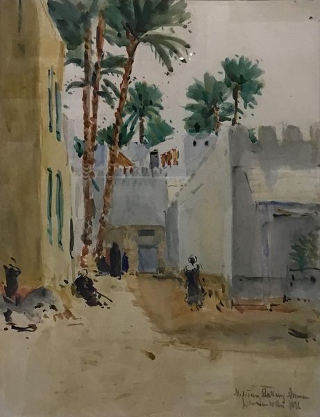 Curator: Here we have Denman Waldo Ross's watercolor, "Street Scene, Mexico," housed at the Harvard Art Museums. It captures a bustling marketplace. Editor: My first impression is of a dreamlike quality, an almost faded memory. The muted palette evokes a sense of nostalgia or perhaps even the passage of time. Curator: Notice the composition, how the artist directs the eye through a careful arrangement of forms. See the architectural lines converging to a central, almost obscured, focal point. Editor: The figures, though small, feel symbolic. They echo the energy and enduring cultural rituals of Mexican marketplaces, places of trade and community. Curator: Exactly. The artist's subtle color choices create a cohesive, balanced whole, showcasing the interplay of light and shadow. Editor: It is a compelling piece, a convergence of the personal and the cultural, expressed through skillful artistry. Curator: Indeed. A wonderful synthesis of form and content.