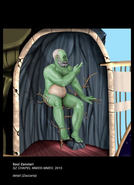 This work from 2015 by Saul Zanolari looks like a digital painting, a contemporary take on something classic. The color palette is muted, almost fleshy, with a strange blend of softness and hyperrealism. I'm drawn to how the bodies are rendered - they're in such a state of tension and contortion. Take that figure in the middle ground, she’s splayed out against a tree trunk, there’s a contrast between the smooth skin and the rough texture of the bark. It’s almost like the artist is playing with the idea of figures being sculpted or emerging from the landscape. This piece makes me think about the way artists like Francis Bacon played with the figure and the body. Like Bacon, there’s a sense of unease and disruption to the way we think about the human form and its relationship to the world. It’s the kind of piece that keeps you looking, keeps you guessing.