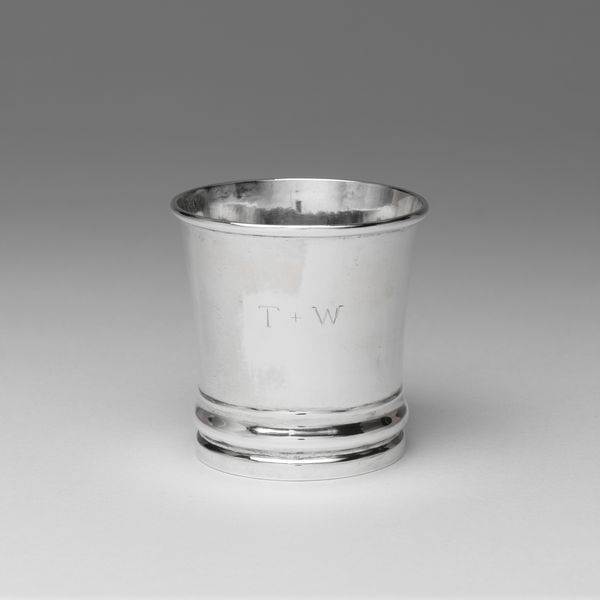 Editor: Here we have Denis Colombier's silver tumbler, crafted in 1789. Its polished surface and delicate, engraved frieze give it an air of restrained elegance, I think. What’s your take? Curator: This piece reflects a pivotal moment, straddling aristocratic indulgence and the burgeoning ideals of the French Revolution. Do you see how Neoclassicism, which was closely tied to moral virtue, contrasts against a very costly object that speaks to elitism? It is quite literally of two minds. Editor: It’s interesting you mention virtue! How does this object speak to the upheaval of the late 18th century? I initially saw only refined taste, not socio-political tensions. Curator: Think about the materials: silver, highly reflective, easily polished, but also easily tarnished if neglected. It's a statement about the fragility of wealth and power during a time of radical social change. That delicate engraved frieze; do you read it as merely ornamental, or might there be encoded messaging reflecting a broader social dialogue? Editor: I hadn’t thought of it like that. So, an object of luxury can simultaneously embody political anxieties and even critique? Curator: Precisely. Decorative arts, like this tumbler, offer fascinating insights into the complexities and contradictions of the past. They allow us to rethink history not just from the top down but through everyday objects and the lives of those who commissioned and used them. Editor: That definitely gives me a richer appreciation of this tumbler. Thank you! Curator: My pleasure! Examining the historical context certainly adds another layer of depth.