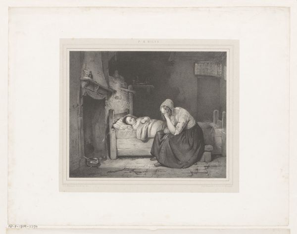Curator: Here we have "Twee jachthonden," or "Two Hunting Dogs," an engraving made sometime between 1847 and 1865. The artist is Adolf Carel Nunnink, and it resides here at the Rijksmuseum. Editor: It's remarkably still. You get this very domestic, calm vibe even though the dogs and the setting are linked with hunting, usually quite an active pursuit. There's a subtle contrast there that I find really engaging. Curator: The stillness, I think, is carefully constructed. It is of its time, part of a broader tendency within genre-painting towards sentimental domestic scenes and the rising prominence of the bourgeois in Dutch society. Editor: Definitely. These genre paintings often omit the difficult aspects of life, like poverty, or in this case, the potential cruelty of the hunt. We get a curated image of country life. Do you think that affects the viewer's response today? Curator: I believe so. These representations played a significant role in shaping the public's perception and expectations regarding class and social mores. You have a specific power dynamic expressed through animals. A codification of human control, ownership and by extension, class hierarchies. Editor: Right. The hunting dog as status symbol. But isn’t there also a sense of vulnerability in the dogs’ relaxed poses? The one in the foreground looks utterly at ease, almost unaware. Maybe Nunnink is trying to show something more. Curator: Perhaps. The level of detail he achieves through engraving gives it a real sense of intimacy, drawing the viewer into their world, inviting empathy. But ultimately it perpetuates specific values related to ownership, class, and human-animal relations. Editor: It's interesting how these layers co-exist, that these scenes are beautiful but rooted in ideologies. Understanding this interplay is so important, it reveals the values the art actively promoted. It is in line with the long history of artists getting in bed with those in power. Curator: Indeed. By acknowledging the underlying framework that allowed these paintings to thrive, we get closer to a balanced perception of the works and society. Editor: So, while appreciating Nunnink's skills, it is valuable to discuss the circumstances that shaped and gave relevance to this kind of piece. That allows the audience to be more insightful when looking at it, don't you think?