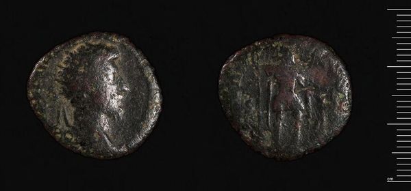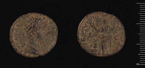 Curator: This is a coin of Ilium, dating from the reign of Caracalla. It weighs just over 7 grams and currently resides in the Harvard Art Museums. Editor: It feels weighty, doesn't it? Not just in literal terms, but in the images pressed into the metal - the stern, almost haunted profile feels burdened. Curator: The depiction of Caracalla is significant here, particularly when considered alongside his brutal reign. Currency served not just as a medium of exchange but as propaganda. How does the image of the Emperor intersect with lived experience of his rule? Editor: Look at the repetition of forms! The laurel wreath echoes the curl of his beard, underscoring authority and imperial power. Think of the semiotics of coinage! What figures are omitted or included to further emphasize the ruler's position? Curator: Right. Analyzing the power dynamics inherent in portraiture is key. How did Caracalla use his image to both solidify his rule and, perhaps, obscure the violence enacted during his time? Editor: Precisely. It's more than a simple portrait; it's a carefully constructed representation of power, designed to resonate across his empire. Curator: A potent reminder of how visual imagery shapes historical narrative. Editor: Indeed, a material artifact brimming with cultural memory.