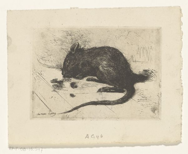 Guillaume Anne van der Brugghen made this drawing, "Kat die een bord uitlikt," which translates to "Cat licking a plate," likely sometime in the mid-19th century. The artist's choice to depict such an intimate, everyday scene invites us to consider the evolving role of domestic animals in society. Cats, often associated with femininity and the domestic sphere, take on new meaning in this context. During the 19th century, there was a shift in the perception of animals as mere property to beloved companions. Van der Brugghen seems to capture the emotional bond between humans and their pets. There's a sense of quiet observation in the drawing, as if we're catching a glimpse into a private moment. Consider the cat's focus and vulnerability as it indulges in a simple pleasure. Perhaps van der Brugghen uses the cat as a symbol of contentment and simplicity, offering a subtle commentary on the complexities of human life.