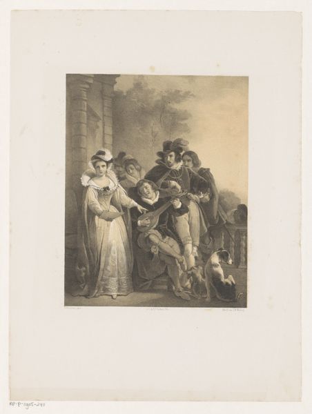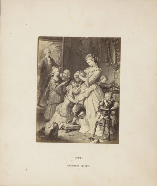 L. van de Wildenberg created this print, "Pasgetrouwd stel op de rand van een bed," which translates to "Newly Married Couple on the Edge of a Bed," using an etching technique. It's a scene brimming with the social codes of its time. Looking closely, you see more than just a domestic scene. This is a window into the rituals and expectations surrounding marriage. The serving woman presenting refreshments speaks volumes about social class and gender roles. The intimacy of the bedroom, juxtaposed with the presence of onlookers, creates a tension, hinting at the public nature of private life in the 19th century. Prints like this circulated widely, and understanding their meaning requires delving into the social history of the Netherlands: examining etiquette manuals, marriage contracts, and even household inventories. By doing so, we start to understand how art reflects and reinforces societal norms. It's a challenge, but that's what makes art history so rewarding.