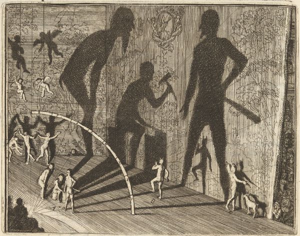Editor: Phil Bard's 1938 drawing and print, "Aftermath," strikes me as unsettling. The figures seem dehumanized, almost like they're marching towards some unknown, ominous event. How do you interpret this work? Curator: You're right, there's a deep unease. For me, "Aftermath," created on the eve of World War II, speaks powerfully to the anxieties of its time. Consider the historical backdrop: rising fascism, economic depression. Can we see this march as a procession towards the abyss? Editor: That's interesting. So, the almost grotesque figures could be read as symbols of a society collapsing under the weight of political and economic turmoil? Curator: Precisely. And the surreal elements—the mannequins, the disembodied eye—might represent the disintegration of traditional values and the fragmentation of identity under such pressures. Do you notice how the mechanical forms contrast with the organic, almost sickly, textures? Editor: I see that now! There’s definitely a tension between the manufactured and the natural…almost as if they’re in conflict with each other. It really emphasizes the dystopian mood. What role does the title play in your reading? Curator: "Aftermath" suggests we're not just witnessing a march, but facing the consequences of a catastrophe. It encourages us to confront the lingering wounds of the past and contemplate a potentially bleak future, relevant then and perhaps disturbingly resonant today. Editor: I hadn't considered how much the historical context shapes the meaning. Now it feels less like a strange drawing and more like a warning. Curator: Art can act as a mirror, reflecting our anxieties back at us. Examining these works through a historical lens reveals their power to speak across generations, prompting essential dialogues about the past, present, and future.