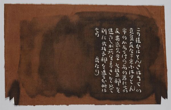 Editor: So, this is "Stencil for Illustrated Don Quixote" by Serizawa Keisuke. It's really striking with the contrast between the dark stencil and the ochre background. It feels like a secret code, almost. What do you see in this piece? Curator: It whispers tales, doesn't it? I see a dance between text and image, where the familiar story of Don Quixote is reimagined through a Japanese lens. The stenciled forms remind me of woodblock prints, a nod to tradition, yet the raw, almost abstract quality feels incredibly modern. What does the story mean to you, looking at it this way? Editor: I guess it makes me think about how stories change depending on who's telling them. I hadn't thought about woodblock prints, though! Curator: Exactly! And perhaps, how we're all a bit like Don Quixote, tilting at windmills of our own creation. Food for thought, eh?