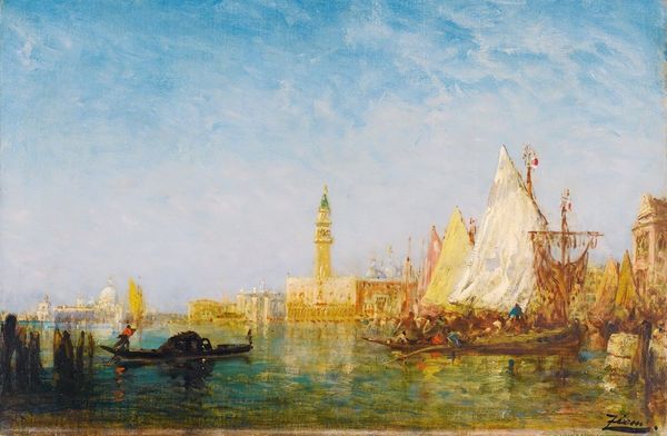 Félix Ziem painted this view of Venice with gondolas and sailboats using oils and canvas. Ziem's brushwork is loose and expressive, which gives the scene a sense of immediacy and movement. You can almost feel the gentle sway of the boats and the shimmering reflection of light on the water, capturing the essence of Venice as a bustling port city. It's easy to imagine the repetitive labor of the gondolier and the bustling commerce taking place around him. This painting reflects a fascination with the working class, and the labor required to keep the city running. By focusing on the materials and processes behind this artwork, we gain a deeper appreciation for its cultural and social significance. It encourages us to challenge traditional distinctions between fine art and craft, recognizing the value of both in capturing the beauty and complexity of the world around us.
